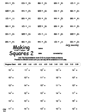 Why do we call a number with a little exponent 2 next to it "squared?" What does a square root look like? To clarify such concepts, a picture is really worth a thousand words. In this case, the picture is the "SquareMaker," a graphic that makes the concepts comprehensible, visible, and establishes a sound basis for fluent recall and calculation. Students learn to add, subtract, multiply, and divide with squares, roots, and other exponents, and extend these concepts and skills to decimals, fractions, and negative exponents - all of which have pictures and graphics to make the concepts clear.